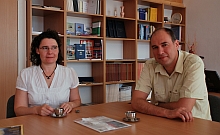 Cécile Cornou (ISTerre Grenoble) and Fabrice Hollender (CEA Cadarache) in the seismology seminar room, Faculty of Math., Physics and Informatics, Comenius University Bratislava, August 11, 2011.